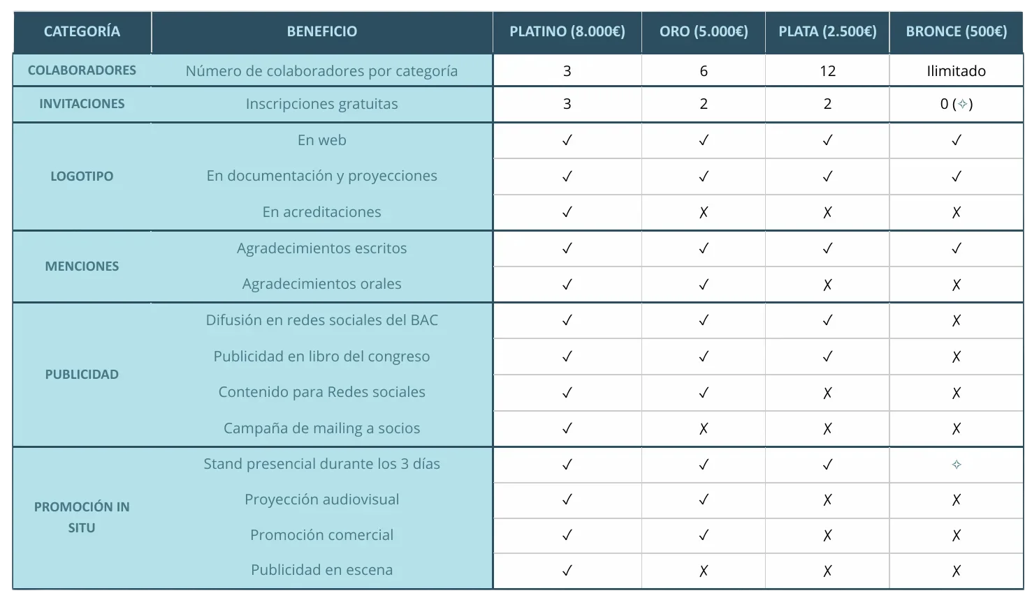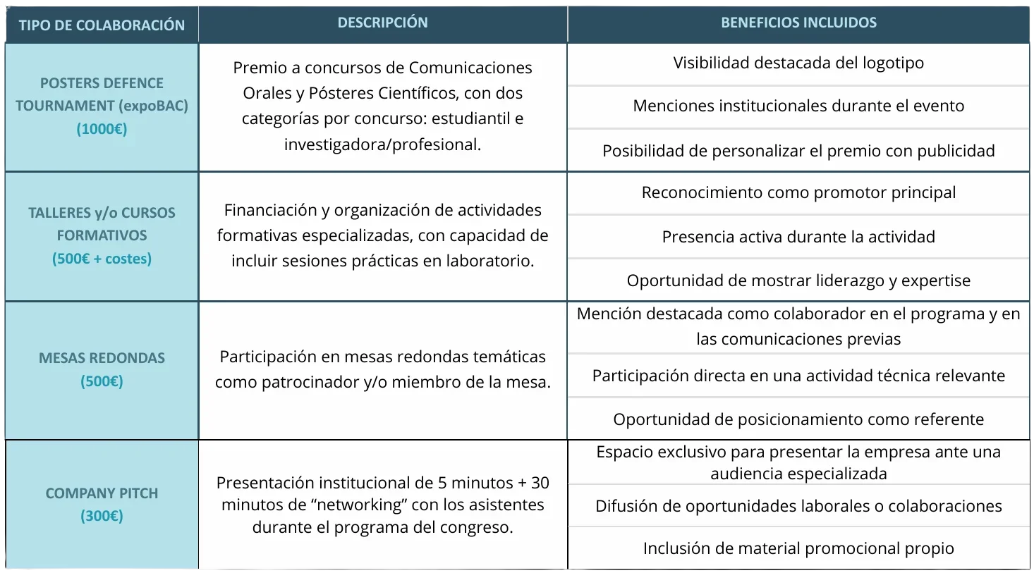 Patrocinar el BAC es una inversión estratégica que le ofrece la oportunidad de posicionar su marca ante cientos de jóvenes perfiles científicos, participar en actividades de visibilidad (como mesas redondas y ferias de empleo) y demostrar su compromiso con el desarrollo de la biotecnología.